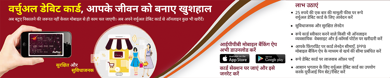 IPPB RuPay Virtual Debit Card is a digital debit card which can be generated by the customers on their mobile banking App. It allows IPPB customers to do digital transactions on ecommerce/ online websites for purchasing of goods/ services/ paying bills etc. on RuPay enabled portals/ payment gateways.